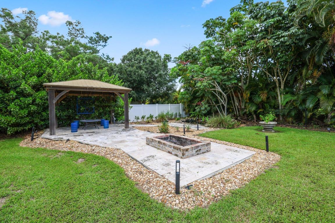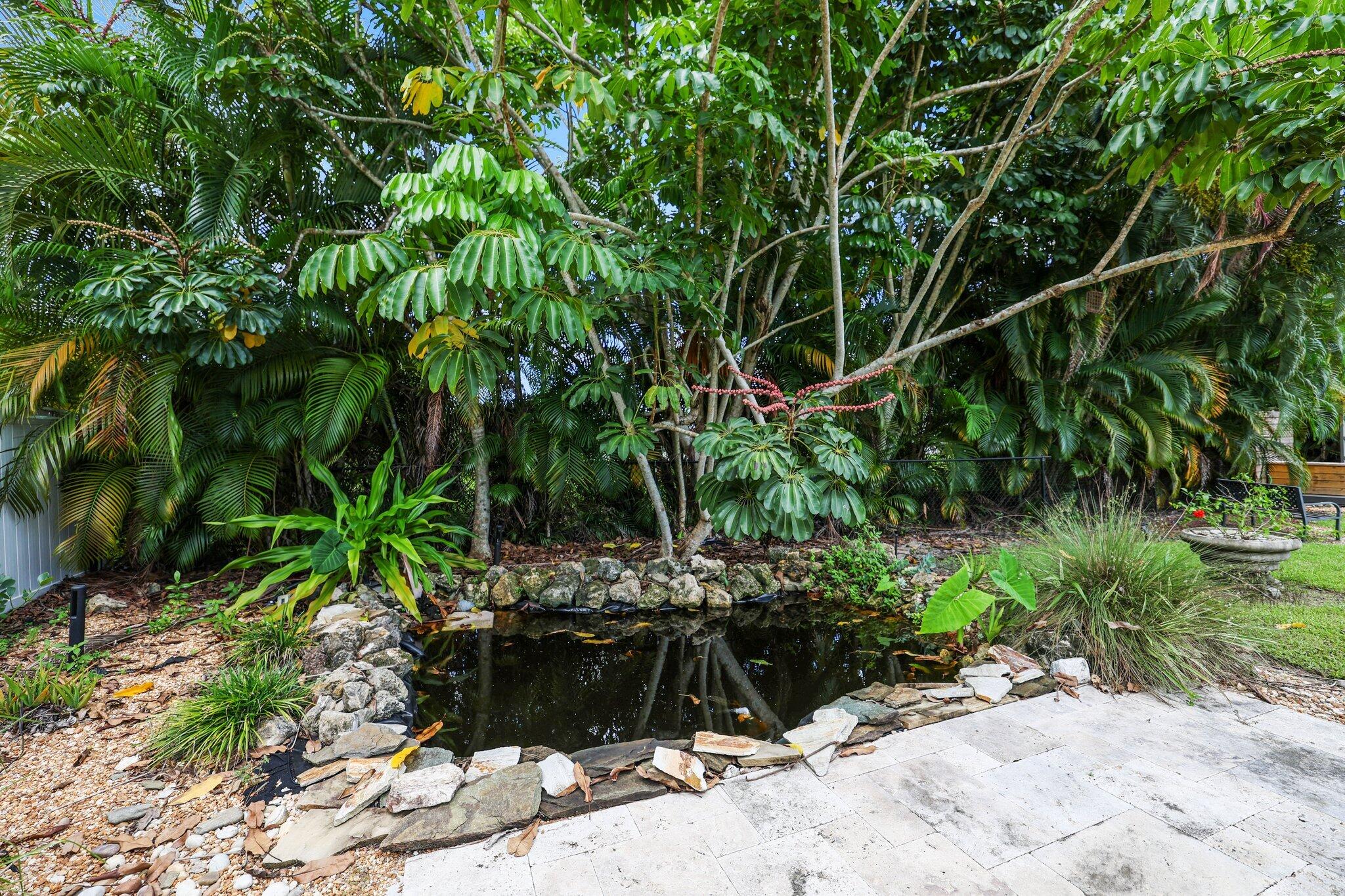 The backyard has a small fenced in space that has been used for dogs to play.. There is a gazebo and a koi pond in the back of the property as well, great for private relaxation or entertaining.