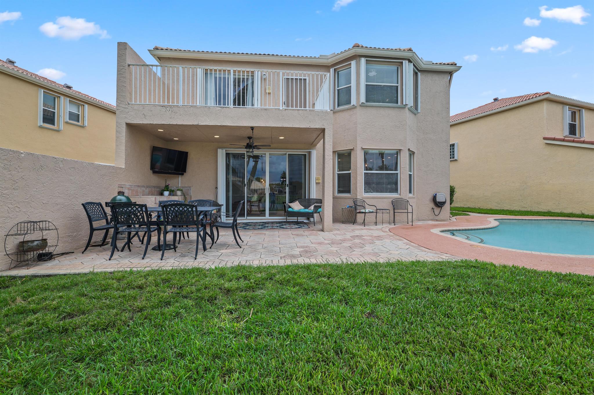 Welcome to Smith Farms, the highly desired, 24-hour man-gated community, located in the vibrant city of Lake Worth. This stunning home offers 4 bedrooms, 2.5 bathrooms, and a generous 2558 sq ft of living space, situated on an over-sized waterfront lot.As you step inside, you'll be greeted by a bright and airy living space, perfect for entertaining or simply unwinding after a long day. The downstairs features a well-appointed kitchen with modern appliances, and a great view of your backyard oasis. The upstairs features your primary bedroom w/ more lake views, a second bedroom with a private balcony, and 2 more rooms with ample space for the whole family.