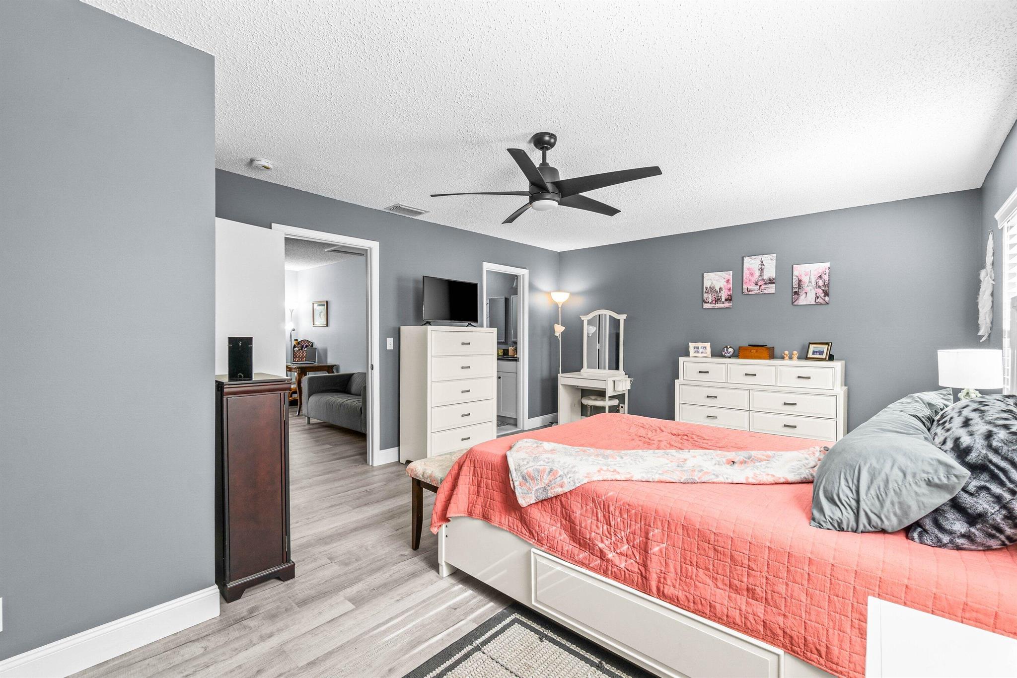 Stunning, two-story corner townhome, spanning nearly 1900 sq ft of interior space. This 3 bed / 2.5 bath home has been meticulously maintained since getting a complete overhaul. In the last few years, this property has seen all new flooring (upstairs and downstairs), new kitchen countertops, new painting throughout, a new master bathroom, and a new sliding glass door to the back patio. Because you are a corner unit, this home has plenty of outdoor and entertainment space. This is a gated community and the clubhouse features a pool, gym, basketball and volleyball courts.